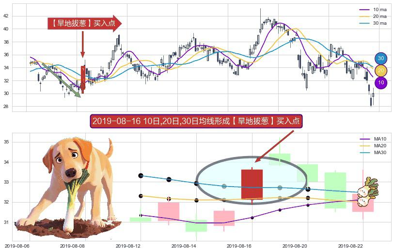 ⚀ 2019-08-16日显现 10日-20日-30日均线 【旱地拔葱】买入点 看多信号,后市看涨,买入