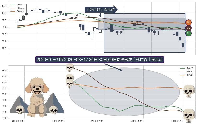 ⚀ 2020-02-03-日至2020-03-12-日显现 20日-30日-60日均线 【死亡谷】卖出点 看空信号,后市看跌,卖出