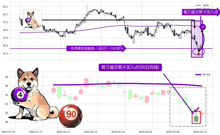 ⚀ 2020-03-12-日显现 葛兰威尔均线 90日均线 第④买入点 下降趋势均值回复的短线反弹信号,后市看涨,买进信号