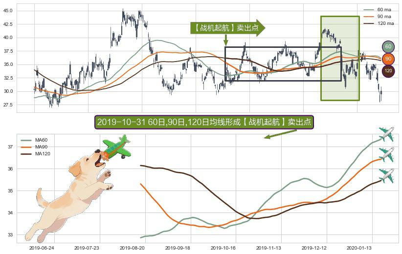 ⚀ 2019-08-16日-2020-01-17日显现 60日-90日-120日均线 【战机起航】卖出点 看空信号,后市看跌,卖出