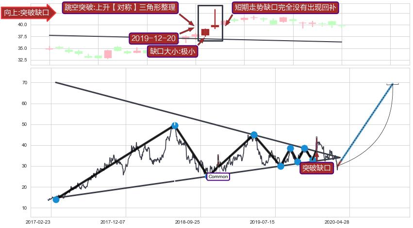 ➣ 跳空突破震荡整理区间,突破【上升【对称】三角形整理】形态