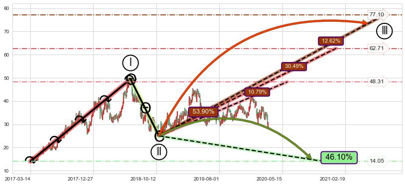 ➣ 循环浪继续向上【平均值】位置(2021-01-08, 62.71),匹配聚类样本比例56.57%, 可能性概率30.49%