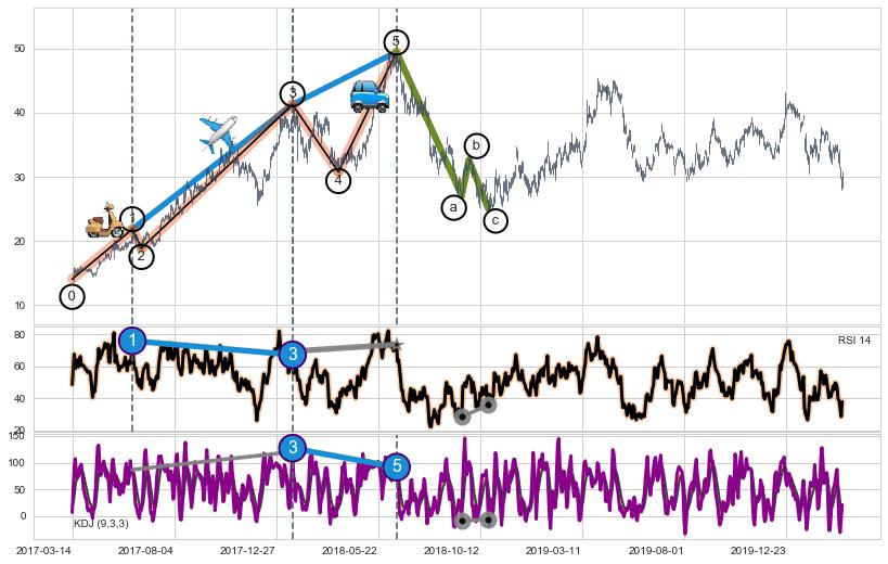 ➣ a,c调整浪RSI走势未出现明显背离