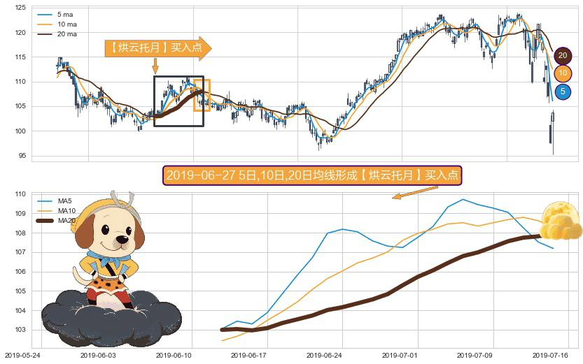 ⚀ 2019-06-12日-2019-07-15日显现 5日-10日-20日均线 【烘云托月】买入点 看多信号,后市看涨,买入