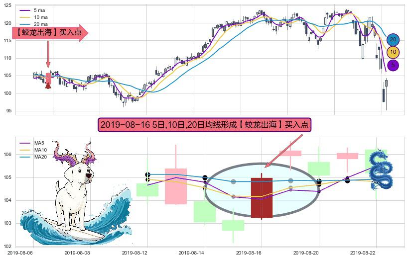⚀ 2019-08-16日显现 5日-10日-20日均线 【蛟龙出海】买入点 看多信号,后市看涨,买入