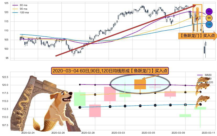 ⚀ 2020-03-04日显现 60日-90日-120日均线 【鱼跃龙门】买入点 看多信号,后市看涨,买入
