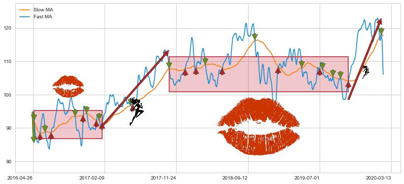 2017-10-26至2019-10-23 慢线与快线多次接触,存在上下穿越,有缠绕