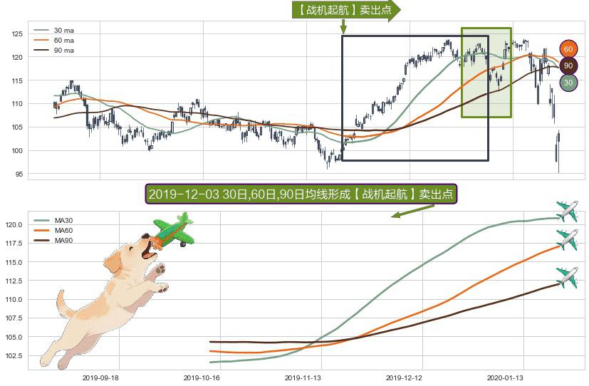 ⚀ 2019-10-14日-2020-01-23日显现 30日-60日-90日均线 【战机起航】卖出点 看空信号,后市看跌,卖出