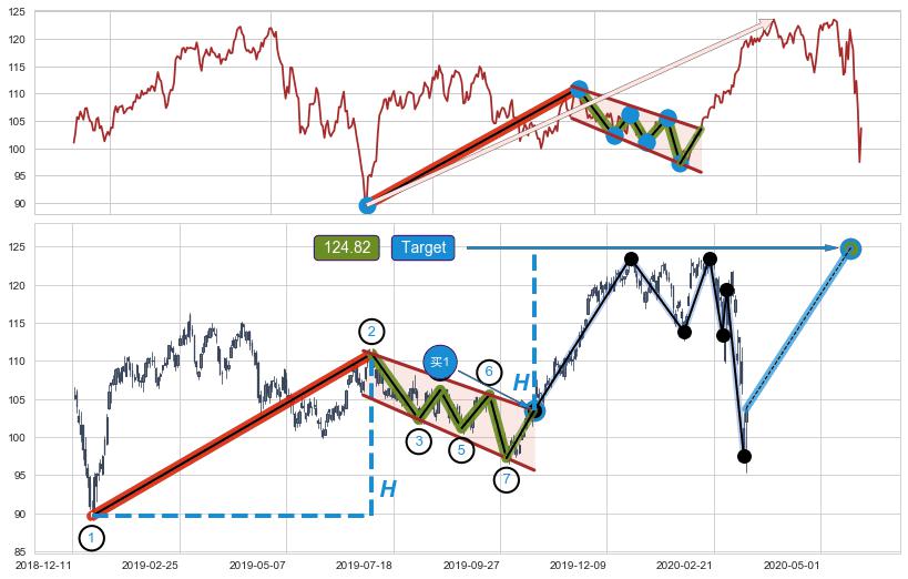 ➣ 最小中继整理涨幅→𝐇: 21.32 (𝐇旗杆的长度:旗杆起点→顶点)