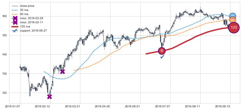 上涨趋势2016-01-07-2016-09-15,均线120确认关键支撑1处