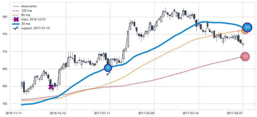 上涨趋势2016-11-11-2017-04-07,均线35确认关键支撑1处