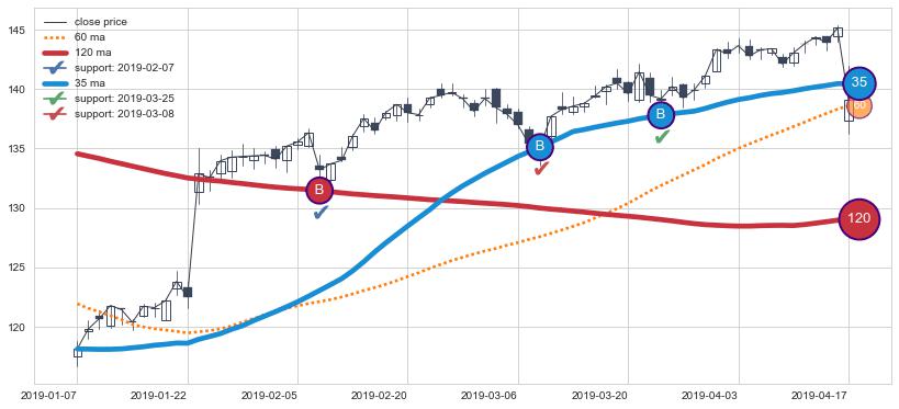 上涨趋势2019-01-07-2019-04-17,均线120, 35确认关键支撑3处