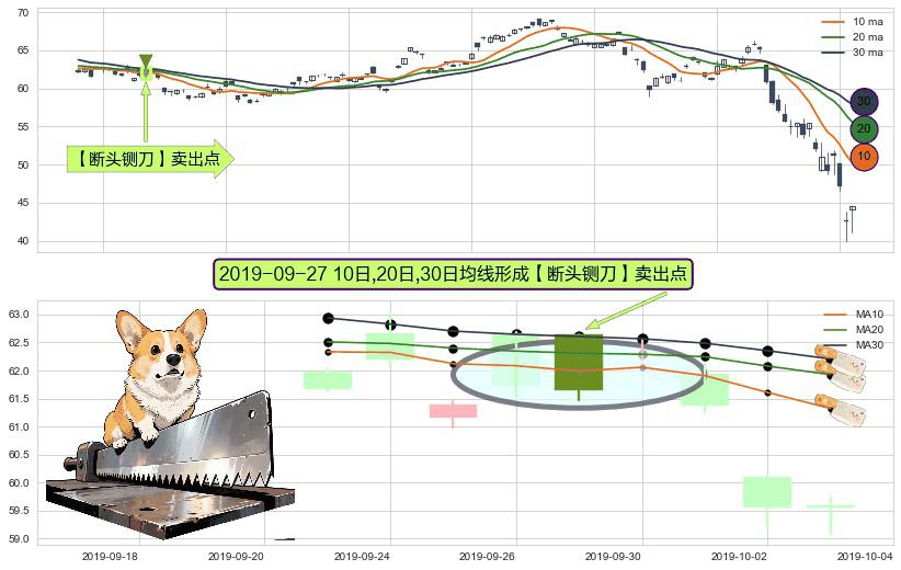 形态多维评估: ⚀ 2019-09-27日显现 10日-20日-30日均线 【断头铡刀】卖出点 看空信号,后市看跌,卖出