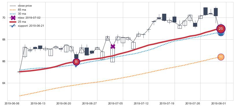 上涨趋势2019-06-06-2019-08-01,均线25确认关键支撑1处