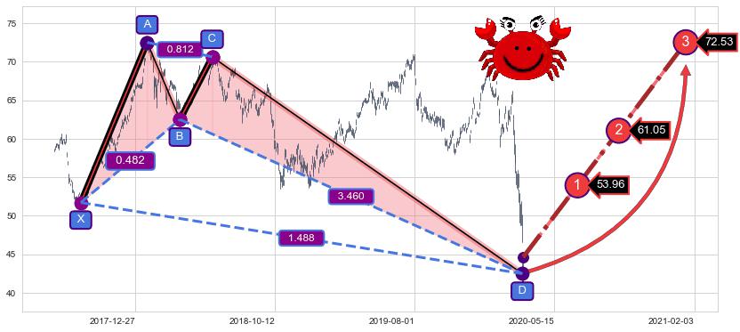 ➣ 已完成【螃蟹】形态起点X: 2017-09-06, 终点D: 2020-03-12, 共633交易日