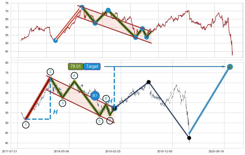 ➢ AI预测: 假定反转如期而至,第❶价格目标位置(2020-07-01, 53.96)
