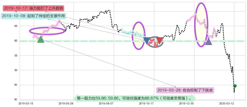 ♘ 阻力价格位59.86,可信任强度86.67%,距离最后交易2020-03-13形成的收盘价格44.62相差 +34.17%
