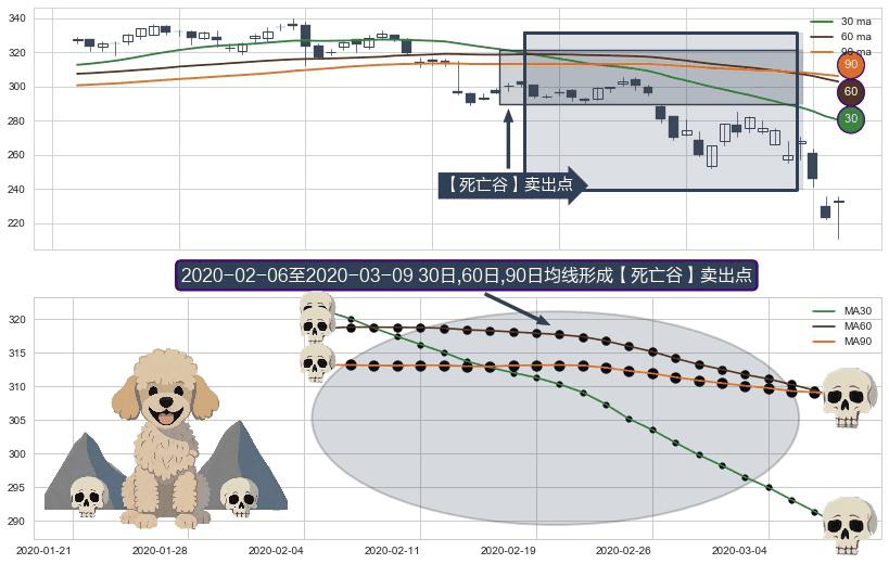 ⚀ 2020-02-07-日至2020-03-09-日显现 30日-60日-90日均线 【死亡谷】卖出点 看空信号,后市看跌,卖出