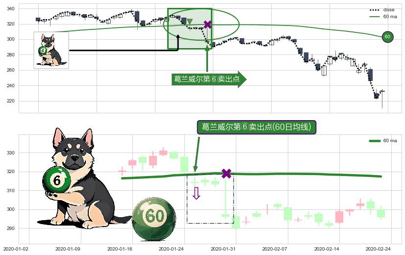 ⚀ 2020-01-27-日显现 葛兰威尔均线 60日均线 第⑥卖出点 走势反转见顶信号,后市看跌,卖出信号