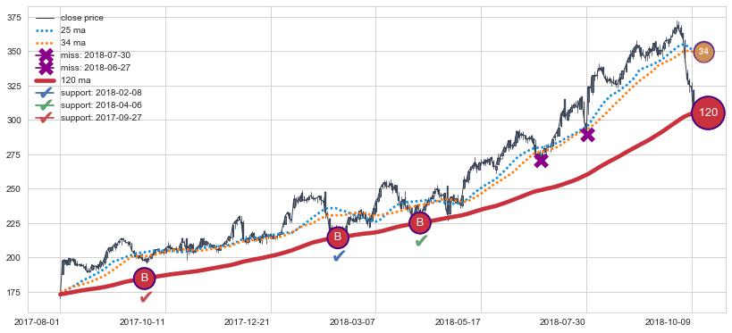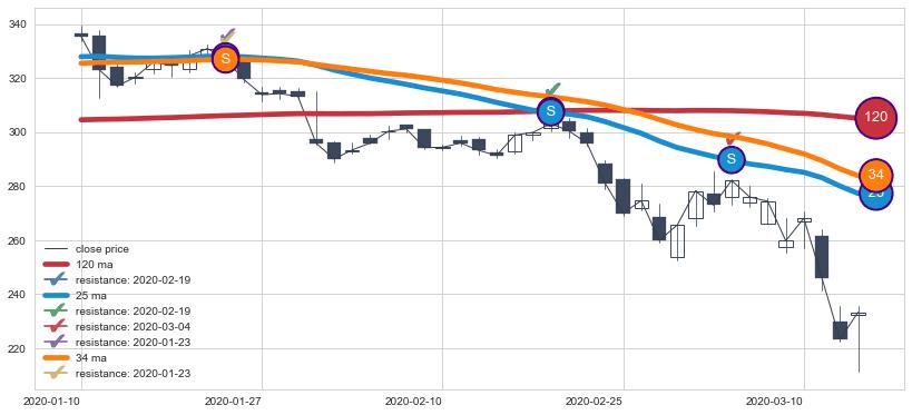 ➢ 最优均线组合共正确确认支撑阻力信号7处,正确确认率 70.00%