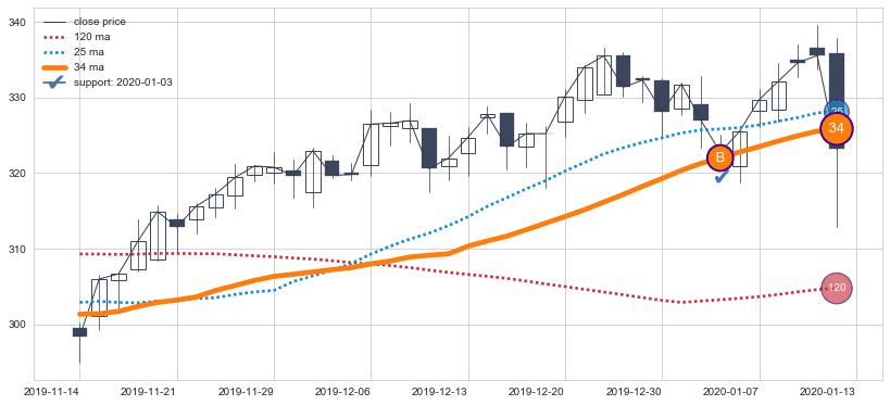 ⚃ 在破位点附近ma走势稍微出现走平迹象,但ma下垂迹象稍稍滞后,信号【可信度中等偏下】
