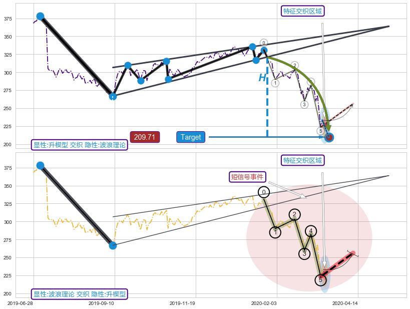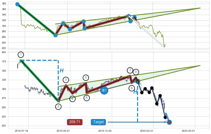 ➢ 【卖1】: 激进型 卖点→(2020-01-24: 321.10 )形成突破升🚩楔型【整理】形态