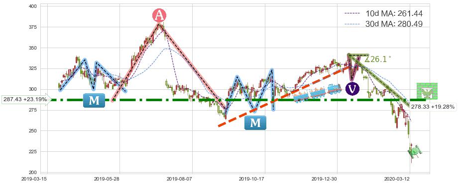 ♘ 阻力价格位287.43,可信任强度85.49%,距离最后交易2020-03-13形成的收盘价格233.33相差 +23.19%