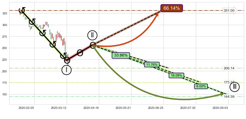 ➣ 【已确认突破】最后价格:233.33与最小【反转】第一目标价格→(2020-03-27: 193.83 )相较: 下跌空间【中等】