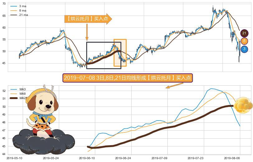 ⚀ 2019-06-06日-2019-08-06日显现 3日-8日-21日均线 【烘云托月】买入点 看多信号,后市看涨,买入