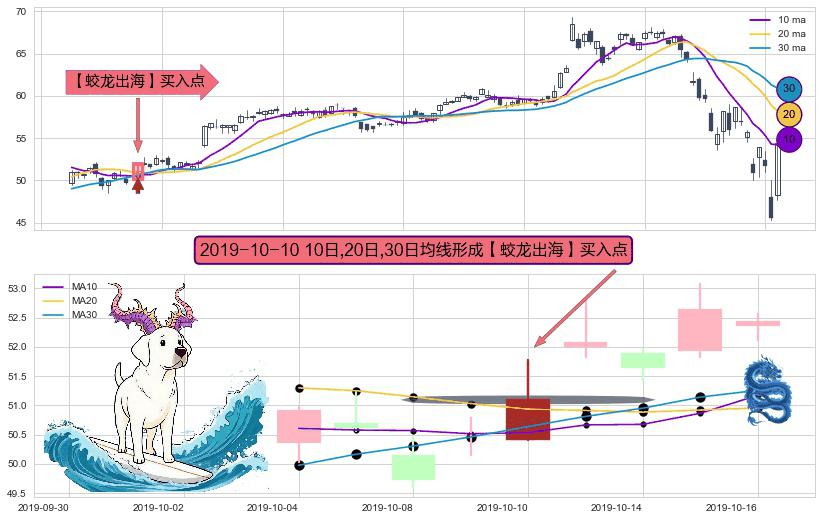 ⚀ 2019-10-10日显现 10日-20日-30日均线 【蛟龙出海】买入点 看多信号,后市看涨,买入
