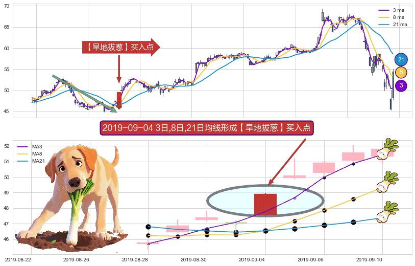 ⚀ 2019-09-04日显现 3日-8日-21日均线 【旱地拔葱】买入点 看多信号,后市看涨,买入