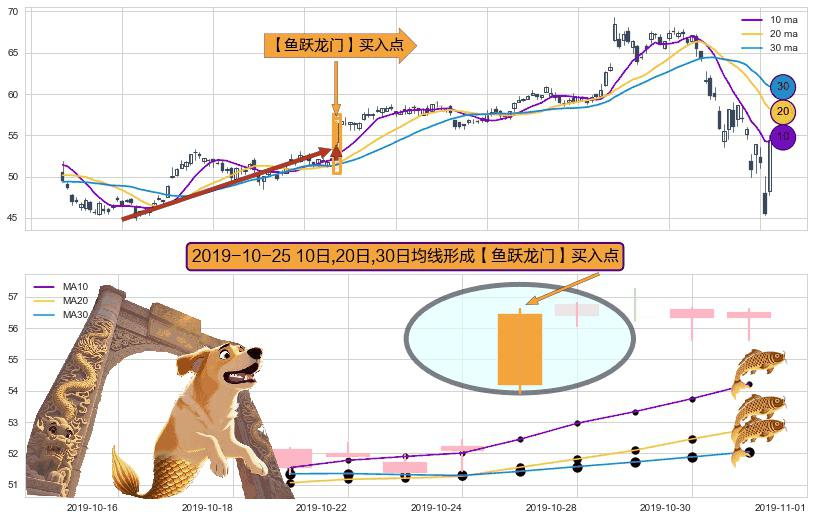 ⚀ 2019-10-25日显现 10日-20日-30日均线 【鱼跃龙门】买入点 看多信号,后市看涨,买入