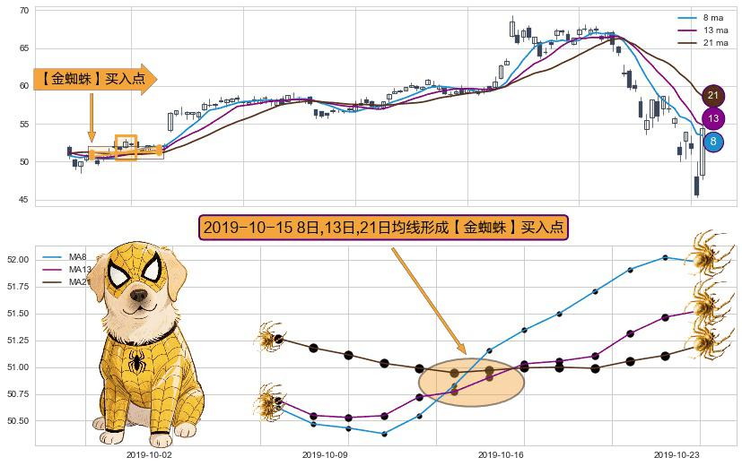 ⚀ 2019-10-15日显现 8日-13日-21日均线 【金蜘蛛】买入点 看多信号,后市看涨,买入