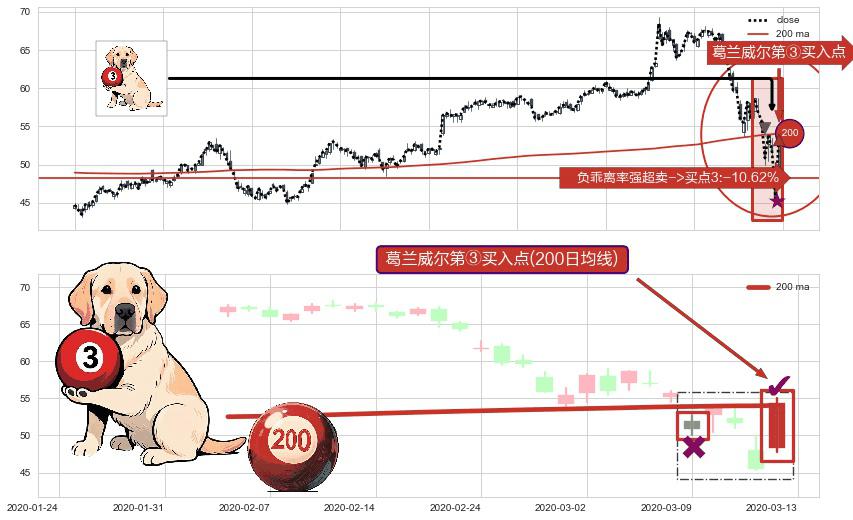 ⚀ 2020-03-13-日显现 葛兰威尔均线 200日均线 第③买入点 上升趋势的中继信号,后市看涨,买进信号