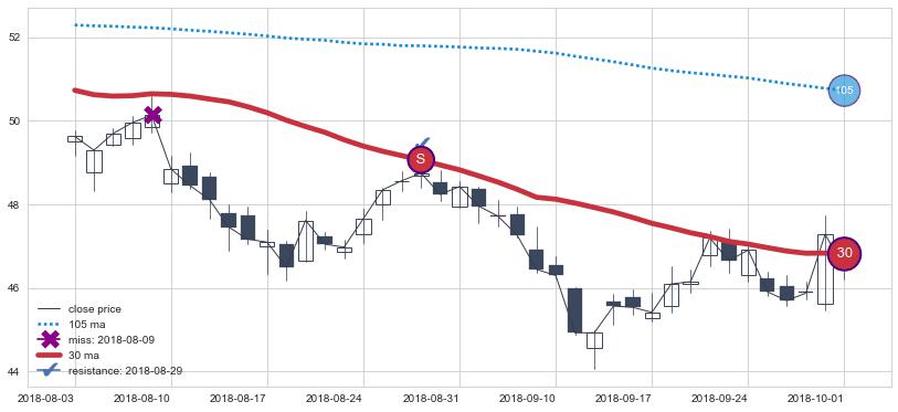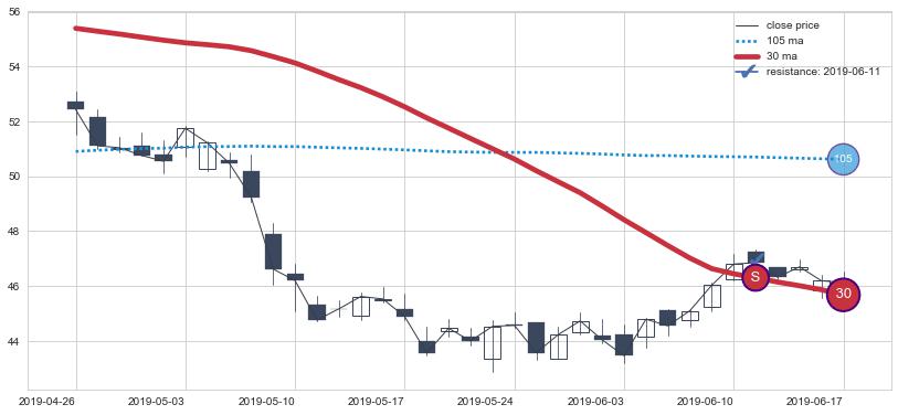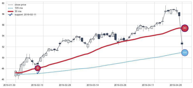 ⚃ 在破位点附近ma走势已有下垂迹象,稍后的走势中ma下降趋势明显,信号【可信度高】