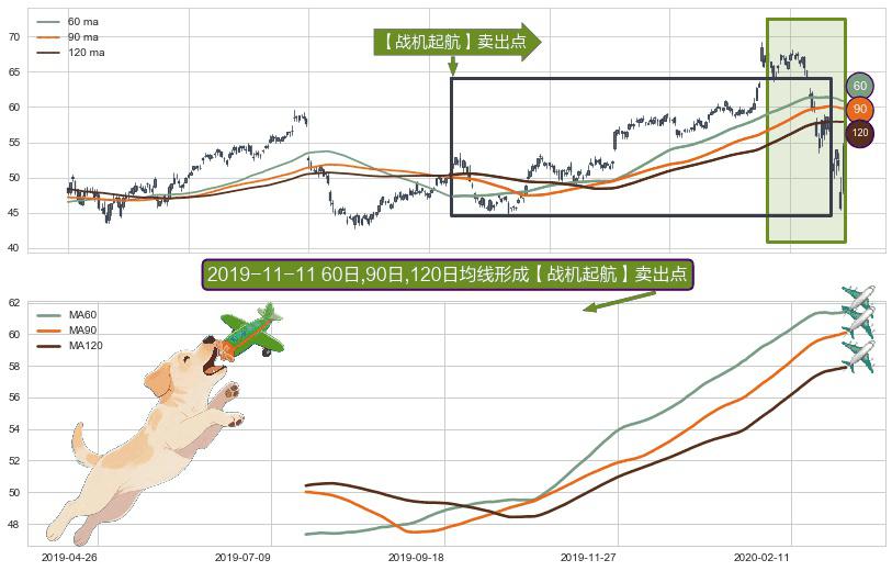 ⚀ 2019-07-23日-2020-03-05日显现 60日-90日-120日均线 【战机起航】卖出点 看空信号,后市看跌,卖出