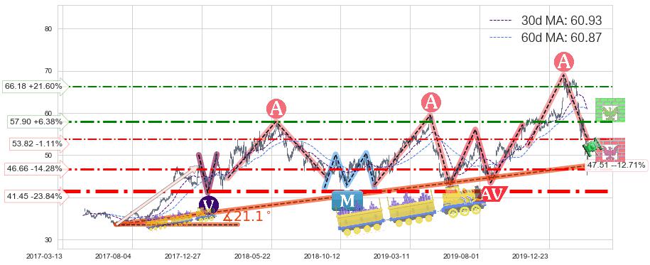 ♘ 阻力价格位57.90,可信任强度66.44%,距离最后交易2020-03-13形成的收盘价格54.43相差 +6.38%