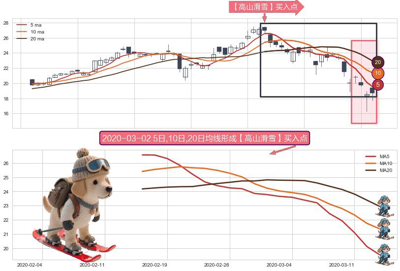 形态多维评估: ⚀ 2020-02-14日-2020-03-13日显现 5日-10日-20日均线 【高山滑雪】买入点 看多信号,后市看涨,买入