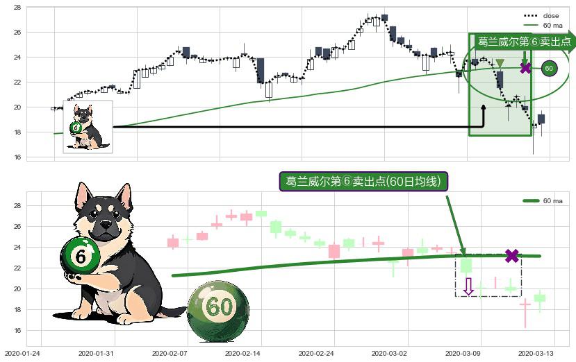 形态多维评估: ⚀ 2020-03-06-日显现 葛兰威尔均线 60日均线 第⑥卖出点 走势反转见顶信号,后市看跌,卖出信号