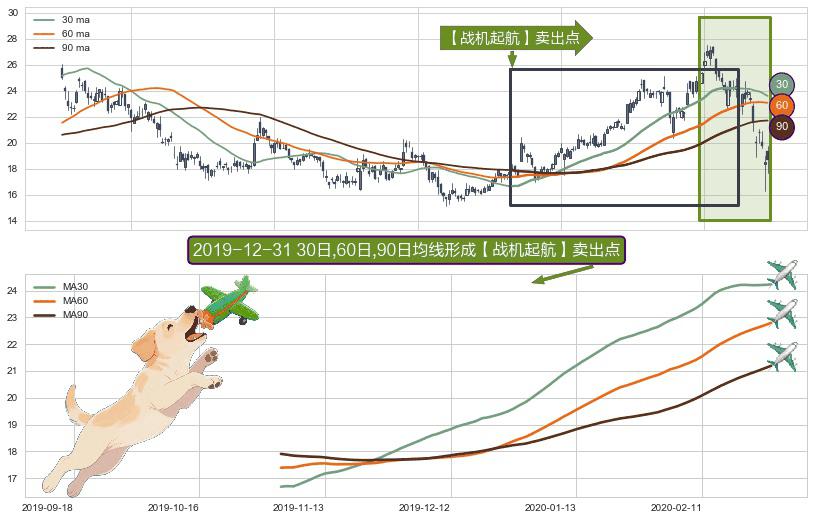 形态多维评估: ⚀ 2019-11-04日-2020-02-27日显现 30日-60日-90日均线 【战机起航】卖出点 看空信号,后市看跌,卖出