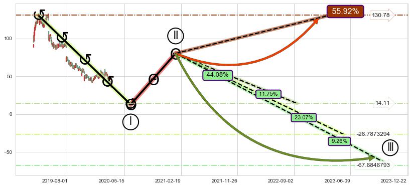 ➢ 循环浪继续向下【最低】位置(2023-12-22, -67.6846793),匹配聚类样本比例21.02%, 可能性概率9.26%
