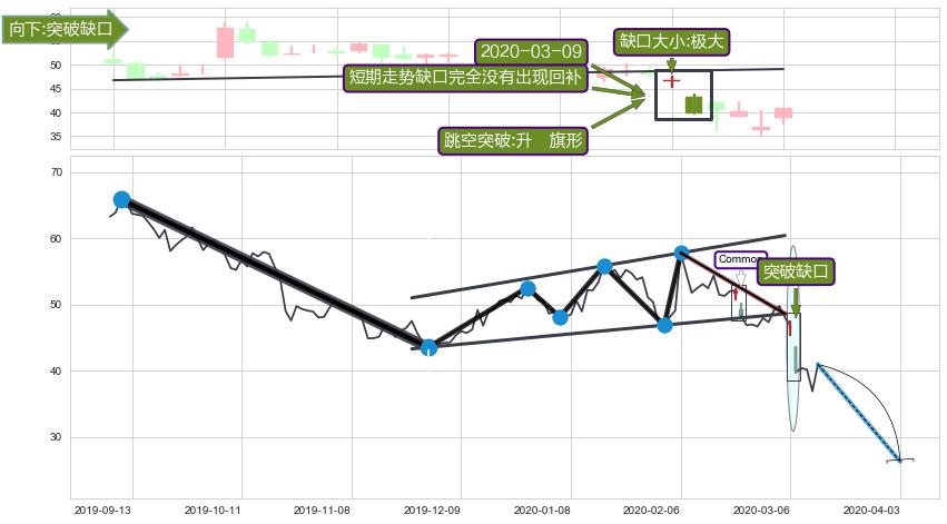➢ 2020-03-09形成:向下跳空【突破】缺口