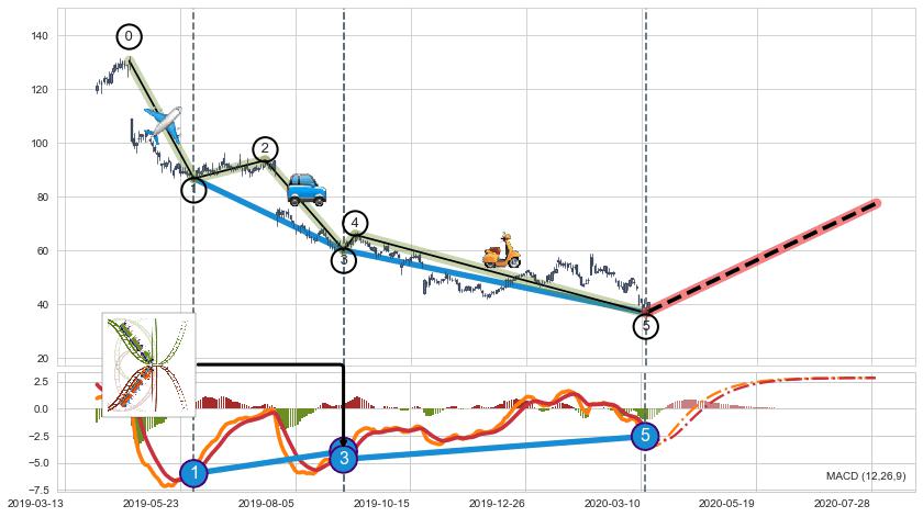 ➢ 第一, 三驱动浪端点:【MACD】走势出现【常规背离 & 反转信号】背离程度63.73%,背离夹角角度88.6˚,背离程度较大