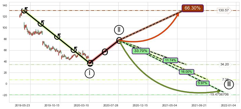➢ 循环浪继续向下【最高】位置(2021-06-16, 34.20),匹配聚类样本比例34.82%, 可能性概率11.74%