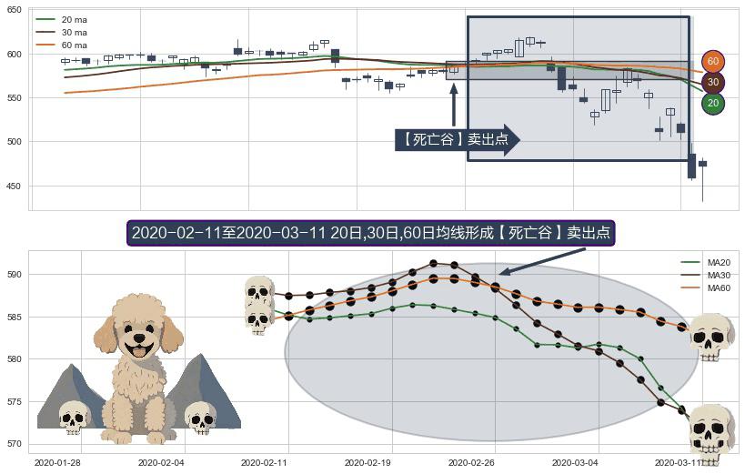 ⚀ 2020-02-12-日至2020-03-11-日显现 20日-30日-60日均线 【死亡谷】卖出点 看空信号,后市看跌,卖出
