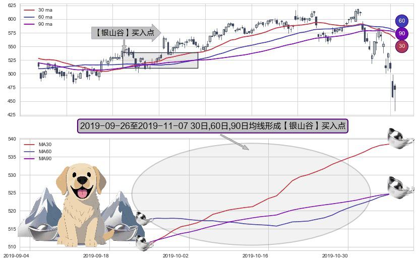 ⚀ 2019-09-27-日至2019-11-07-日显现 30日-60日-90日均线 【银山谷】买入点 看多信号,后市看涨,买入