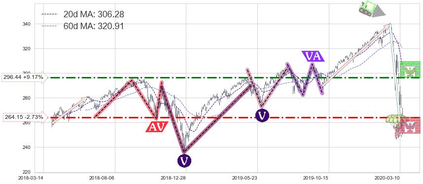 ♘ 支撑价格位264.15,可信任强度63.49%,距离最后交易2020-03-13形成的收盘价格271.55相差 -2.73%
