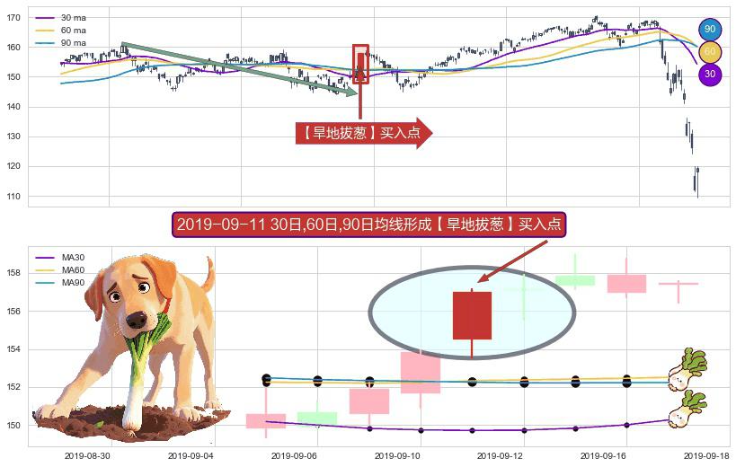 形态多维评估: ⚀ 2019-09-11日显现 30日-60日-90日均线 【旱地拔葱】买入点 看多信号,后市看涨,买入
