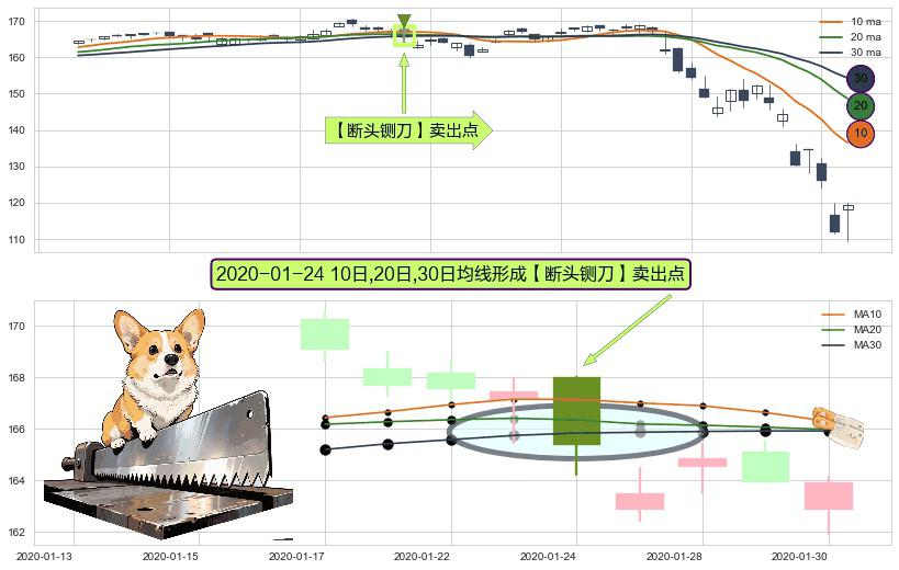 形态多维评估: ⚀ 2020-01-24日显现 10日-20日-30日均线 【断头铡刀】卖出点 看空信号,后市看跌,卖出