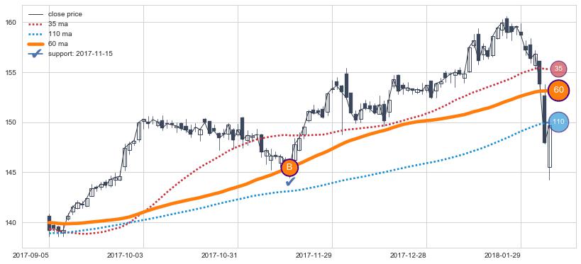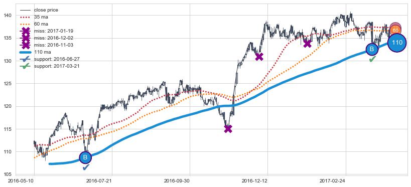 上涨趋势2016-05-10-2017-04-05,均线110确认关键支撑2处